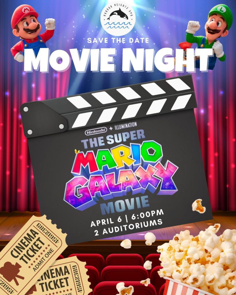 We’re heading to the movies together at Galaxy Theatre for The NEW Super Mario Galaxy Movie. We’ve reserved two auditoriums so everyone can join in on the fun! A great time to see the movie at a discounted group rate and enjoy it with your Harbor Heights friends. all your friends.
